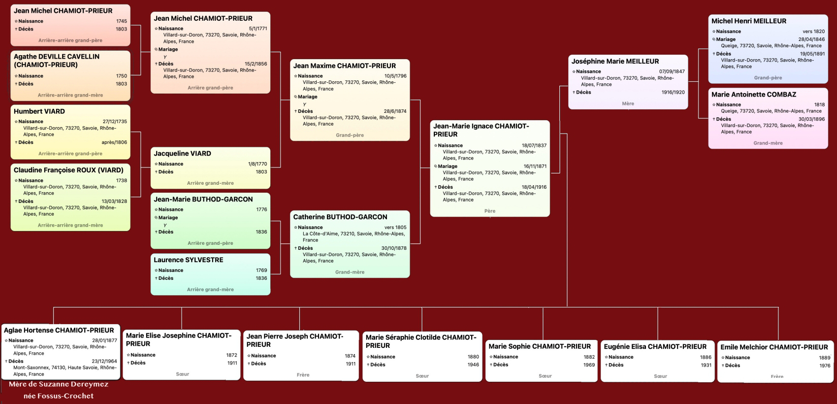 Ascendance maternelle de Suzanne épouse de Marcel Dereymez jusqu'au 18ème s.
