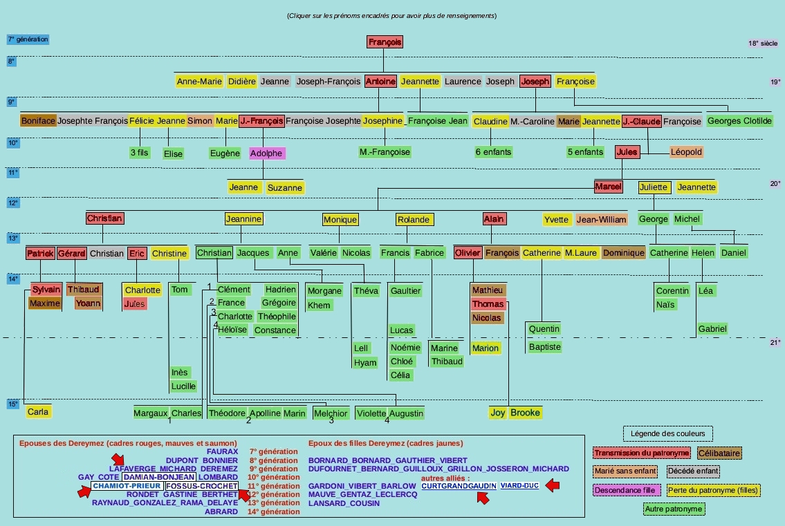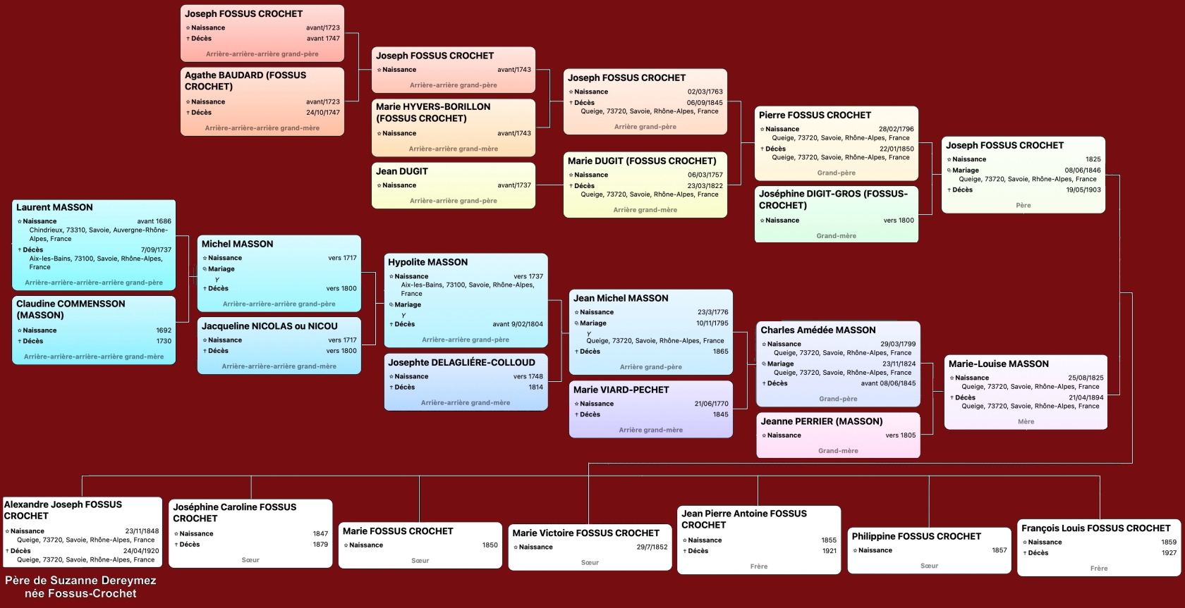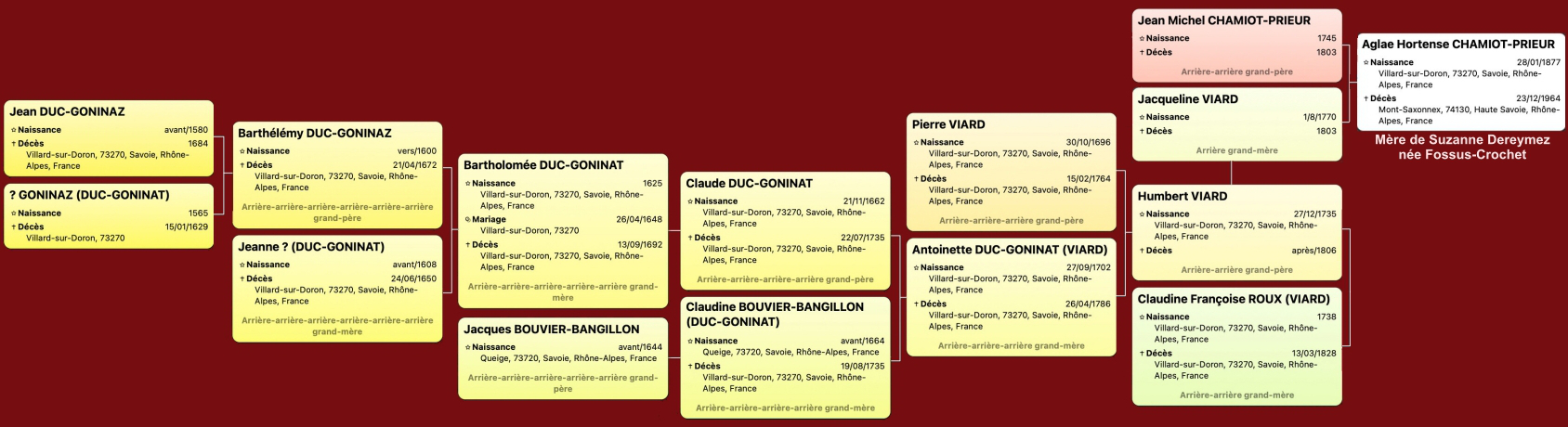 Ascendance paternelle de Suzanne épouse de Marcel Dereymez jusqu'au 17ème s.